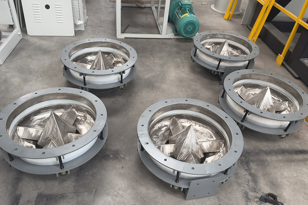 2. Double guide plates guide the flow twice per revolution, resulting in better dispersion of the mixed materials.
